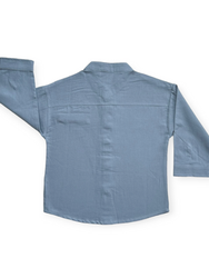 En lett og luftig skjorte i bomull, med mao-krage og knapper foran. Fuskelomme på brystet og lange ermer med ermesplitt, mansjett og knapping.