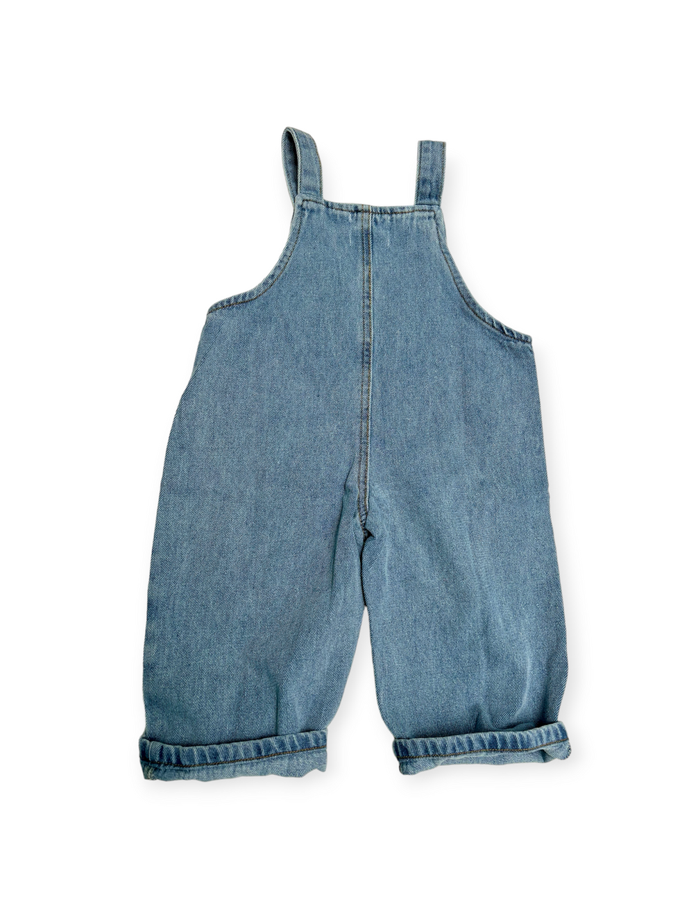 Bella denim selebukse - En nydelig selebukse i vasket bomulldenim med regulerbare stropp med knapper. Åpen brystlomme med noe løsere passform.